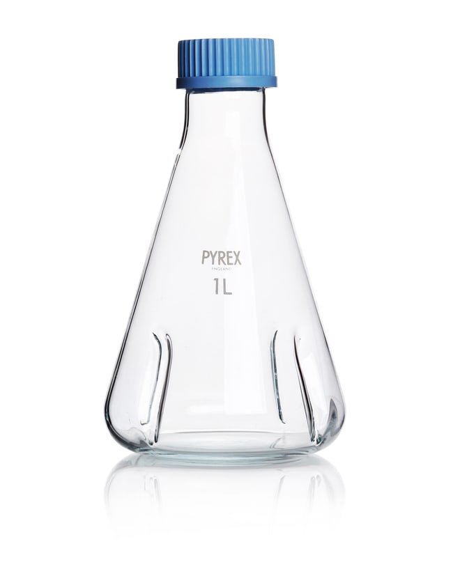 Pyrex™ Baffled Borosilicate Glass Flask with Membrane Screw Cap